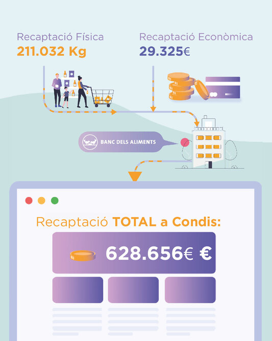 En l’edició d’enguany, amb el lema “Alimenta el que importa”, Condis ha tornat a replicar el model mixt, combinant les donacions físiques d’aliments amb les aportacions monetàries de la ciutadania, per tal, d’una banda, d’ajudar les persones en situació de vulnerabilitat a cobrir els seus dèficits nutricionals, i, de l’altra, sensibilitzar la població sobre la realitat de la pobresa alimentària a Catalunya.
