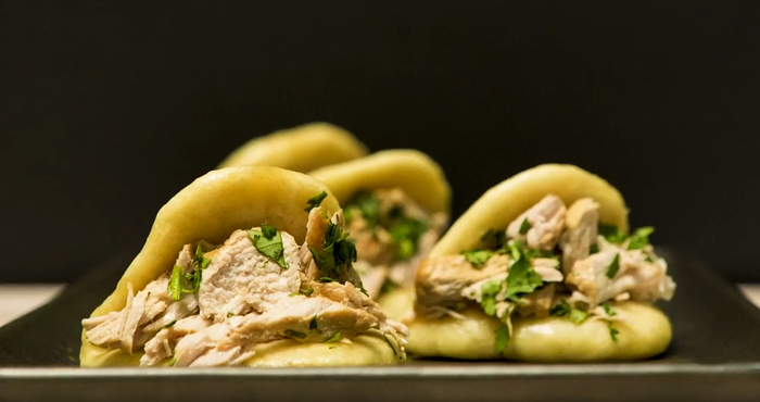 Desmenuzar la carne y añadirla al panecillo con un poco de cilantro picado. Servir.