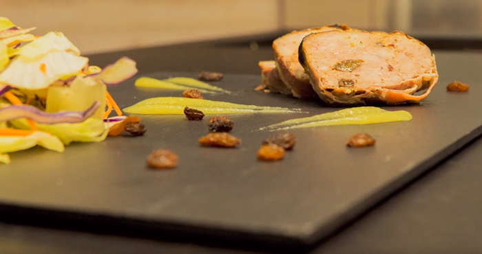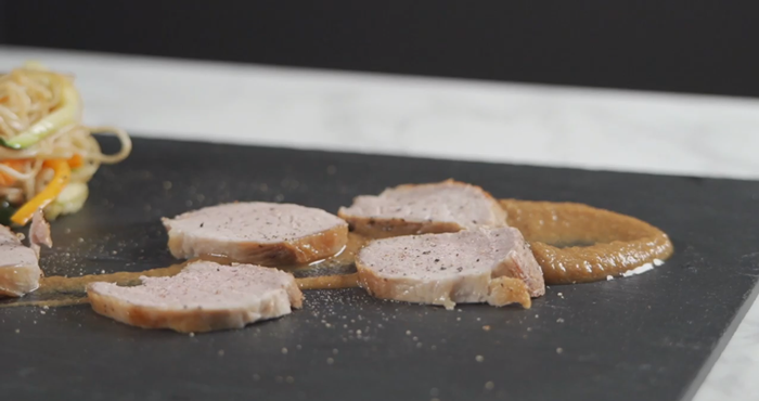 Para el relleno, marcar la carne de cerdo en una sartén con aceite durante 5 minutos. Añadir el jengibre rallado, la salsa de soja y el vinagre de arroz. Cocer unos minutos.