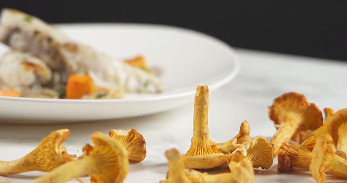 Disponer aceite de oliva en una bandeja de vidrio. Exprimir la naranja y el limón.